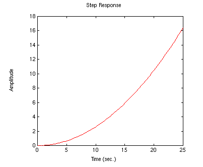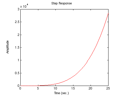 Like the plot for the transfer function this plot shows that the system is unstable and the ball will roll right off the end of the beam. Therefore, we will require some method of controlling the ball's position in this system. The State-Space example below shows how to implement a controller for this type of system.