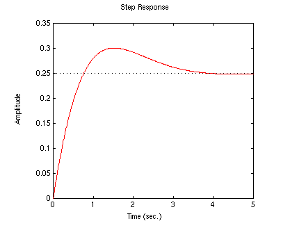 Now, we can model the system's response to a step input of 0.25 m. Add the following line of code to your m-file and run it: