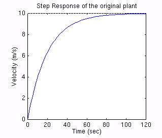 The transfer function in the plant is the transfer function derived above {Y(s)/U(s)=1/ms+b}. The controller will to be designed to satisfy all design criteria. Four different methods to design the controller are listed at the bottom of this page. You may choose on PID, Root-locus, Frequency response, or State-space.