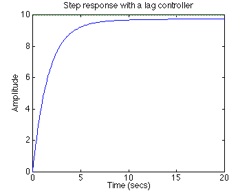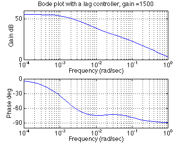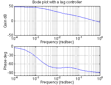 If you take a look at the "Lag or Phase-Lag Compensator using Frequency Response"section of the Lead and Lag Compensator page, the lag controller adds gain at the low freqencies while keeping the bandwidth frequency at the same place. This is actually what we need: Larger low frequency gain to reduce the steady-state error and keep the same bandwidth frequency to maintain the desired rise time. The transfer function of the lag controller is shown below.