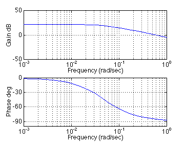 In order to use a Bode plot, the open-loop response must be stable. Let Kp equals 1 for now and see how the open-loop response looks like. Create an new m-file and enter the following commands.
