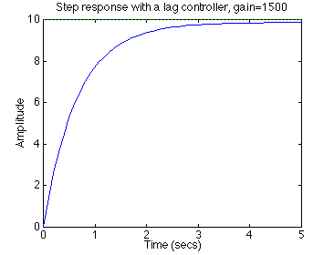 If you noticed, the steady-state error will eventually reach the desired value by increasing the proportional gain even higher. However, by the time the steady-state error reaches the desired value, the rise time becomes too fast (unrealistic for the real physical system). Thus, let's leave the Kp as it is and implement a lag controller to handle the steady-state error problem.