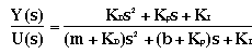 For this particular example, no implementation of a derivative controller was needed to obtain a required output. However, you might want to see how to work with a PID control for the future reference. The closed-loop transfer function for this cruise control system with a PID controller is.