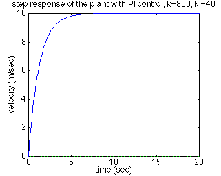 With Kp equals 800 and Ki equals 40, the step response will look like the following: