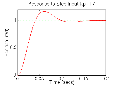 Let's first try using a proportional controller with a gain of 1.7. Add the following code to the end of your m-file: