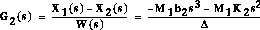 KD=208025; KP=832100; KI=624075; numc=[KD,KP,KI]; denc=[1 0];Now let's simulate the response of the system (the distance X1-X2) to a step disturbance on the road. From the schematic above we can find the transfer function from the road disturbance W to the output(X1-X2):