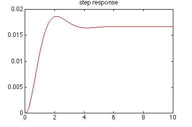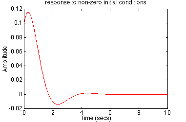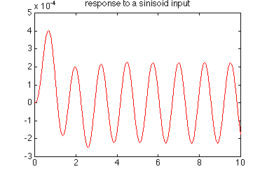 The plot above shows the step response of the system. We can also plot the response of the system to any other input that we choose. For example, if we had a sinusoidal input, say u(t) = 0.1 sin(5t+1):