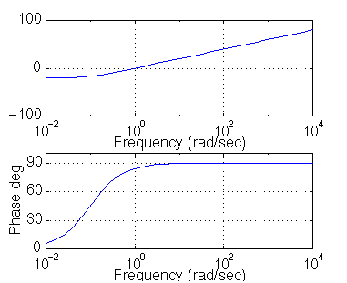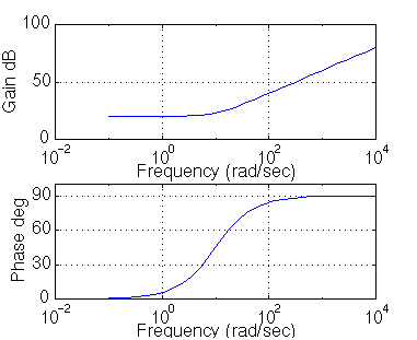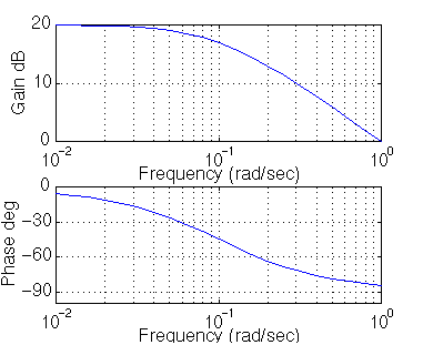 We can view the open loop Bode plot of this system by looking at the Bode plot of Gc(s)G(s). However, we can also view the Bode plots of G(s) and of Gc(s) and add them graphically. Therefore, if we know the frequency response of simple functions, we can use them to our advantage when we are designing a controller: