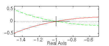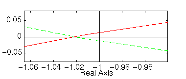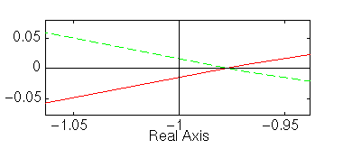 Let's zoom in on the Nyquist diagrams corresponding to different gains using the zoom command.