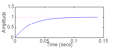 Let's check our predictions by looking at a step response plot. This can be done by adding the following two lines of code into the Matlab command window.