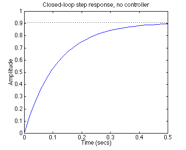 Let's see how the integrator portion of the PI or affects our response. Change your m-file to look like the following (this adds an integral term but no proportional term):